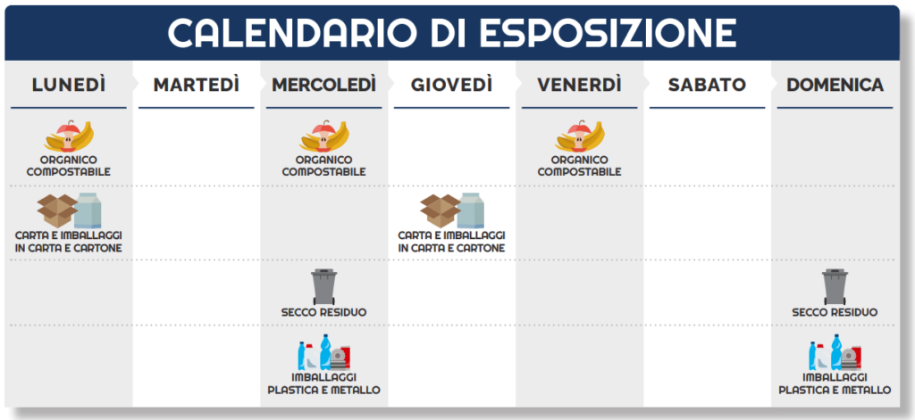 Nota: la disposizione dei bidoni può variare a seconda di come vengono sistemati dagli operatori ecologici.
